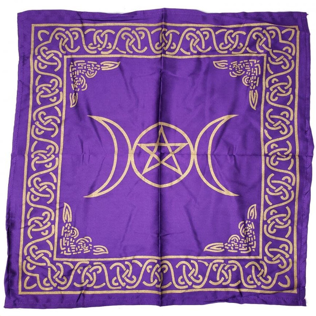 Review Triple Moon with Pentagram Altar Cloth Golden print on Purple Satin 21x21"