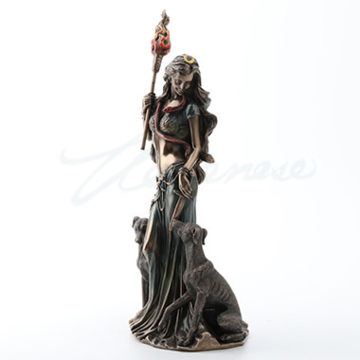 Hecate is a goddess of Greek mythology who was capable of the duality of both good and evil. She was associated with witchcraft, magic, the moon and creatures of the night such as hell hounds and spirits. She is often depicted as a goddess with three faces, representing her role of the guardian of the crossroads and her association with the lunar cycle.