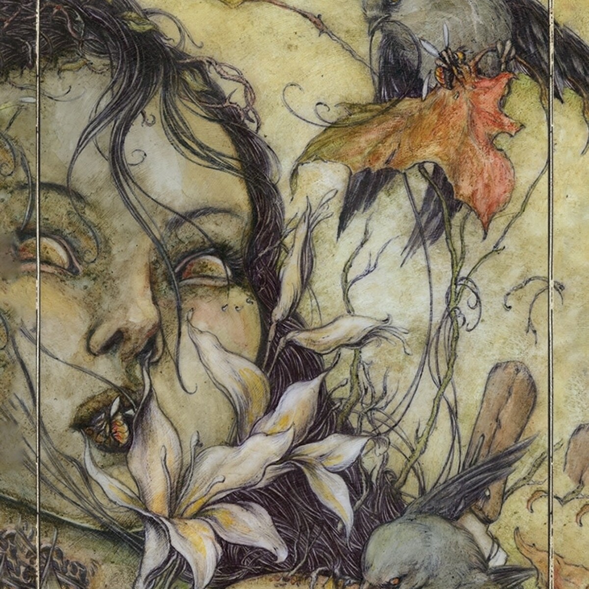 Hush Tarot beckons readers to explore an alluring world where animal and human spirits are unified, and even the smallest creatures like ravens and hares have great significance. At times, they appear lost in the weeds but there is always a hidden clue guiding them to the way out. The fascinating characters and landscapes are illustrated with lush detail inspired by a 19th century aesthetic that explores natural forms in various states of life and decay. Hush Tarot offers a shift in perspective that reveals profound answers to life’s mysteries.