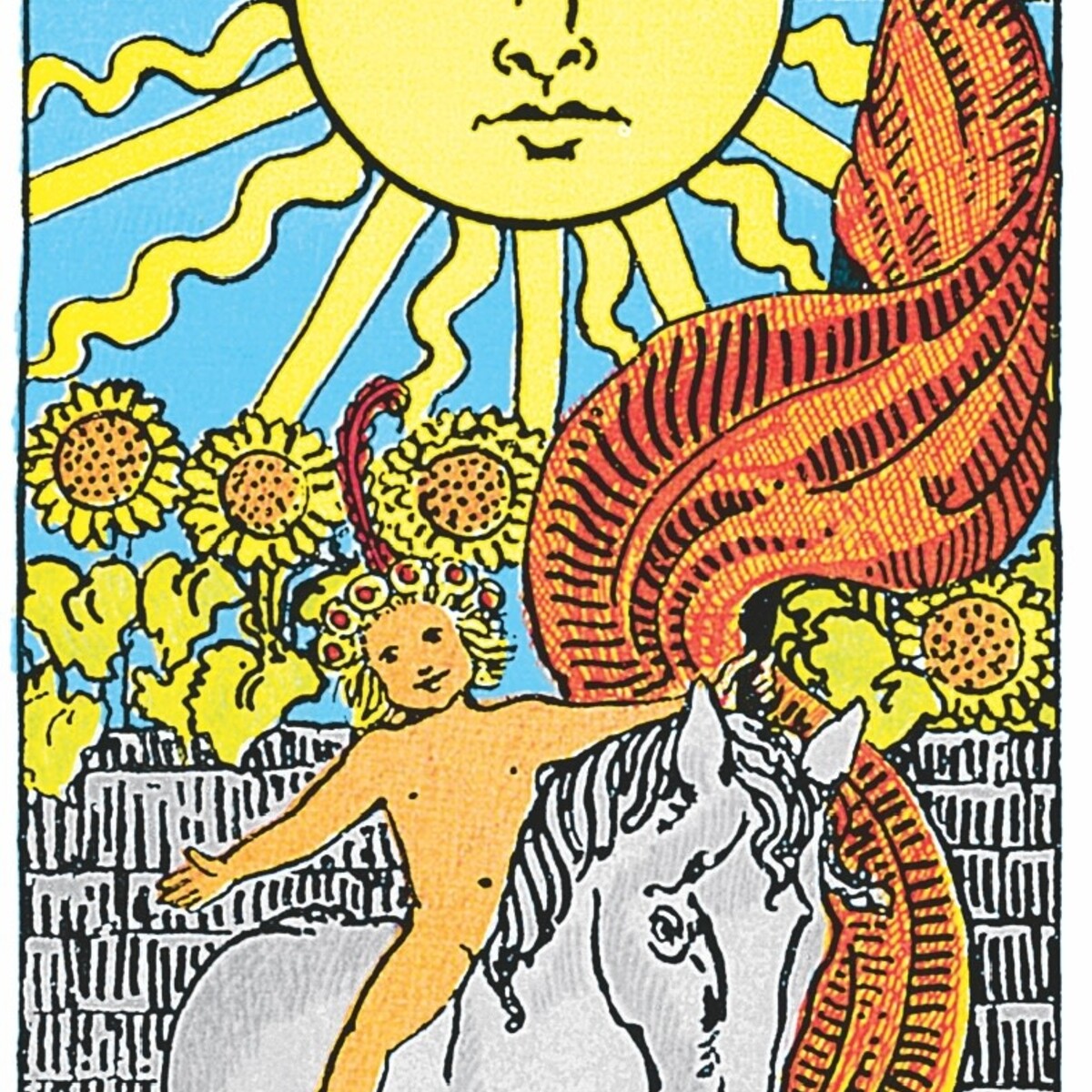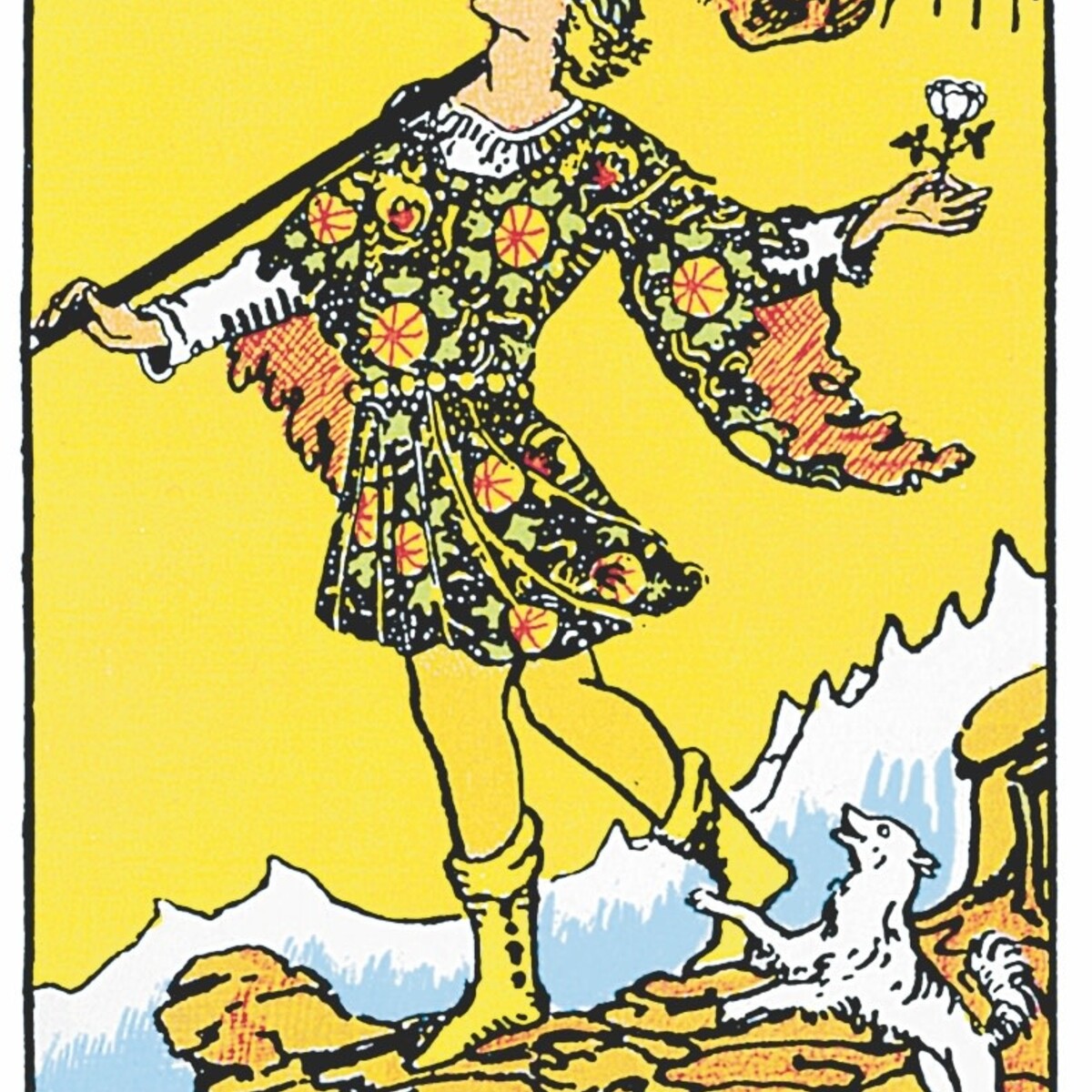 "A unique feature of the Rider-Waite deck, and one of the of the principal reasons for its enduring popularity, is that all of the cards, including the Minor Arcana, depict full scenes with figures and symbols. Prior to the Rider-Waite Tarot, the pip cards of almost all tarot decks were marked only with the arrangement of the suit signs -- swords, wands, cups, and coins, or pentacles. The pictorial images on all the cards allow interpretations without the need to repeatedly consult explanatory text. The innovative Minor Arcana, and Pamela Colman Smith's ability to capture the subtleties of emotion and experience have made the Rider-Waite Tarot a model for the designs of many tarot packs." -- (from The Encyclopedia of Tarot, Volume III)
