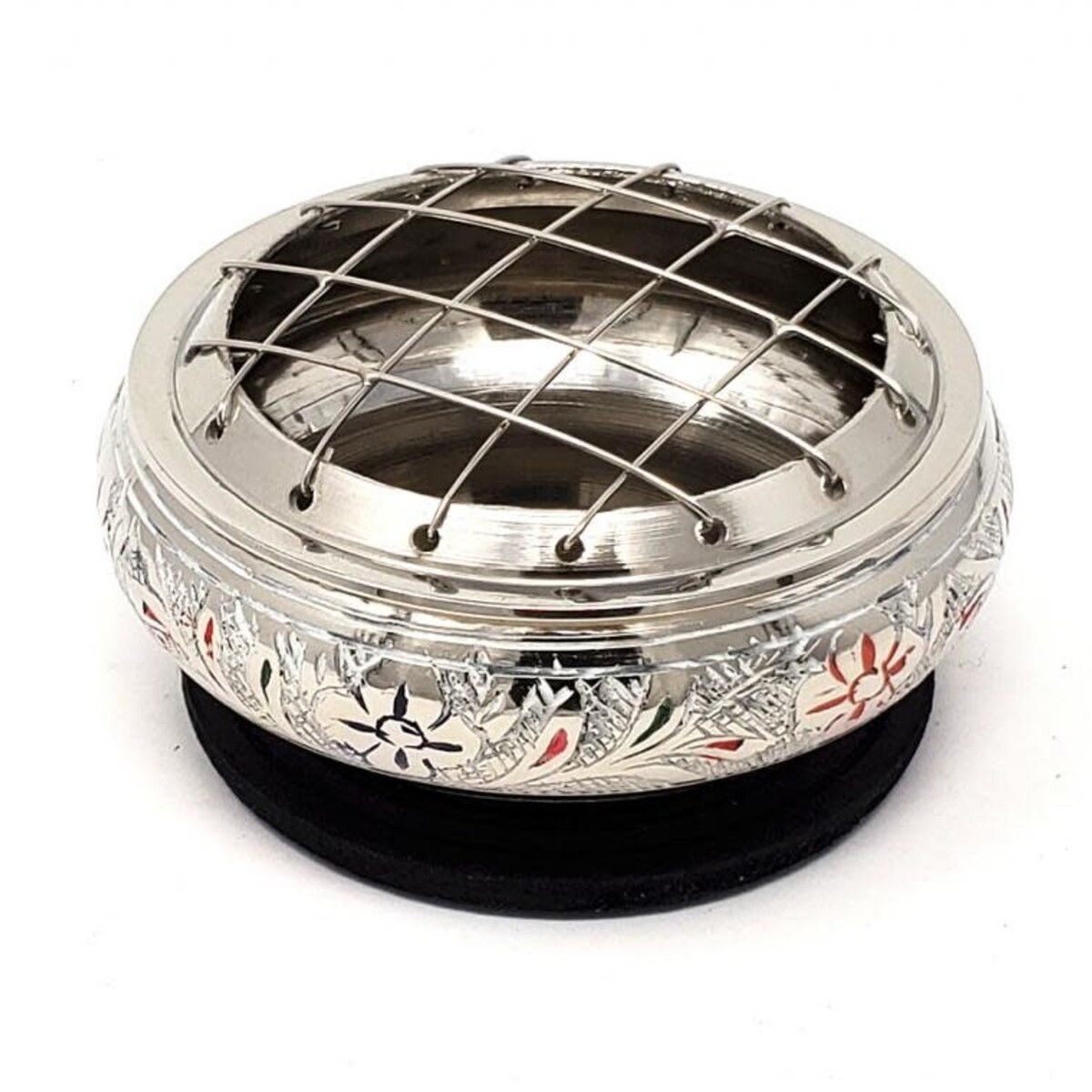 Silver finish engraved Screen Charcoal Burner 2.75"D
