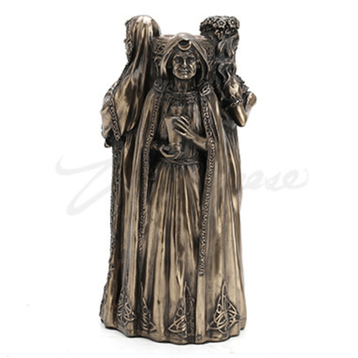 A Triple Goddess or Triple deity is three deities that are worshiped as one. Such Deities are common throughout world mythology; In many modern Pagan traditions, the triple goddess in the form of Maiden/Mother/Crone is honored. She is seen as the femininee counterpart to the Horned God, the female who provides polarity to the male essence.