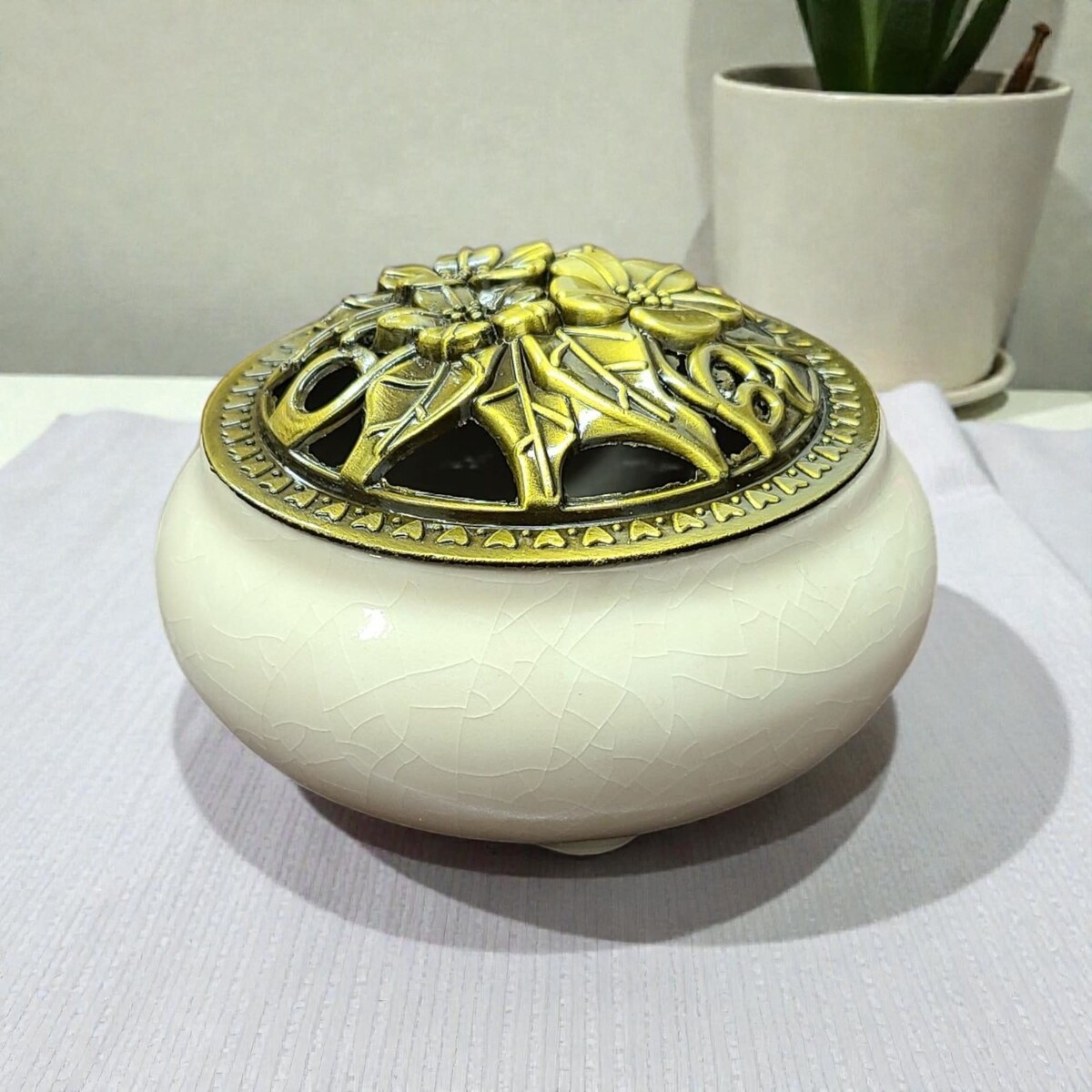 Review White Ceramic Incense Burner Bowl with Floral Lid – 3.75”